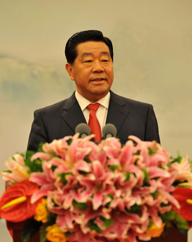 1月1日,中国人民政治协商会议全国委员会在北京举行新年茶话会。胡锦涛、吴邦国、温家宝、贾庆林、李长春、习近平、李克强、贺国强、周永康等党和国家领导人出席茶话会并观看演出。新华社记者 刘卫兵 摄